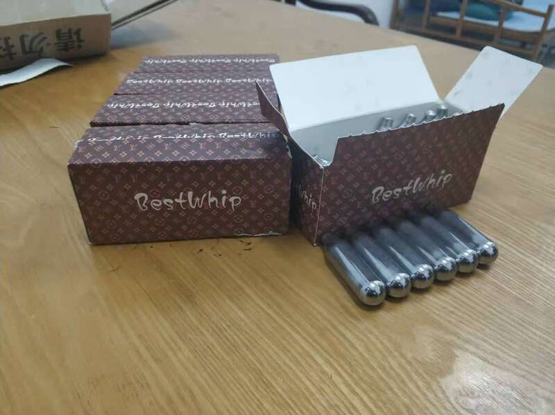 记者拆开包装后发现,在一层纸板覆盖下就是6盒“笑气”。这些盒子上都印有“Best Whip”的字样。每盒有“气弹”24支。据卖家介绍,该“气弹”内含8克“笑气”。在确认收货后,卖家热情地介绍“笑气”使用方法。在吸食“笑气”时,需用到奶油发泡器,一颗“气弹”最多可吸食两次。