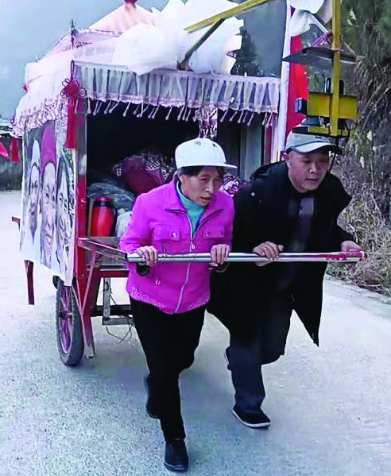 接下来几天,做过焊工的杨厚万和妻子开始忙碌,买材料,安轮子,做车篷。5天时间,一辆外形酷似“轿子”的板车顺利诞生了。