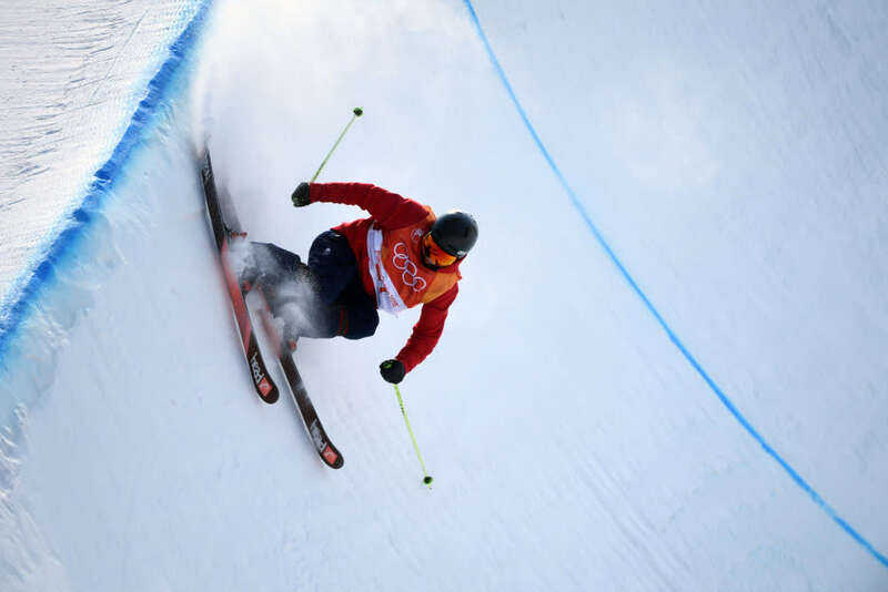 英国选手默里·巴肯在2018年平昌冬奥会自由式滑雪男子U型场地比赛中。新华社记者吕小炜摄