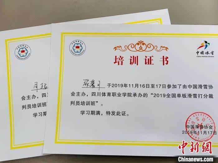 图为张馨月的裁判员培训证书。张馨月供图