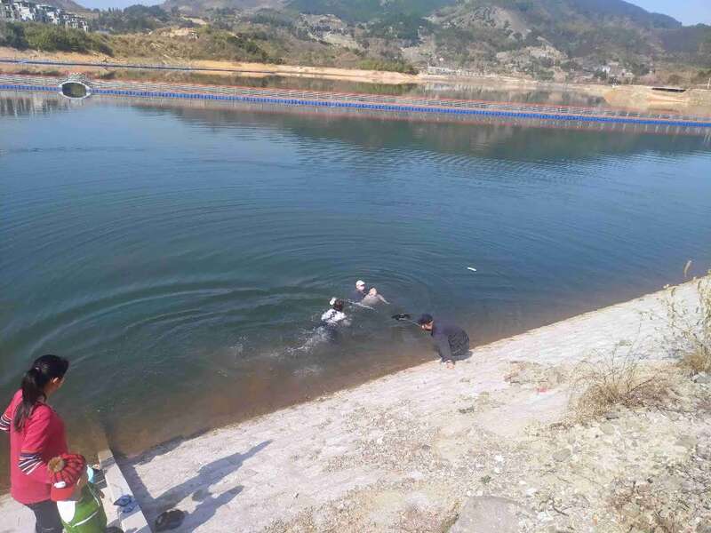今年1月31日,星期天,古田县公安局巡特警反恐大队特警陆燕清陪小女儿在当地景区翠屏湖畔游玩。突然,她听到远处有人呼喊,便朝岸边跑去。
