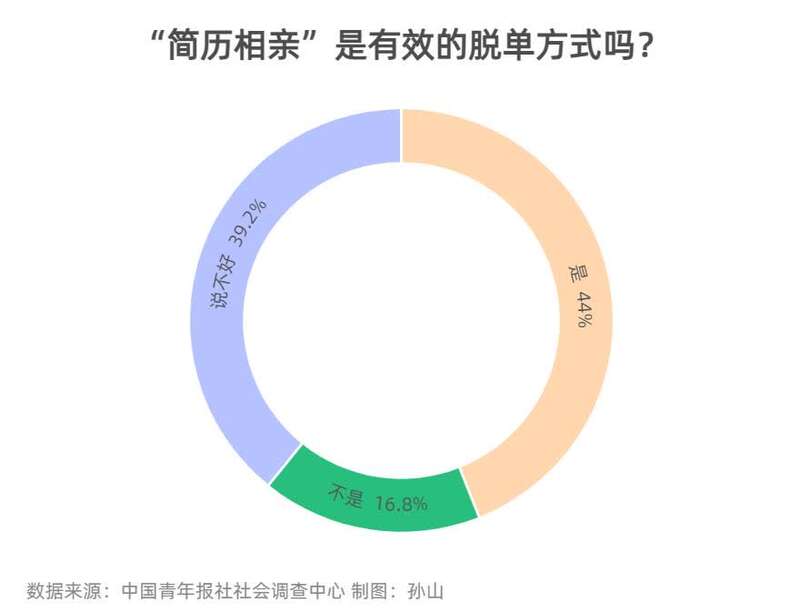 44.0%受访单身青年认为“简历相亲”能有效脱单