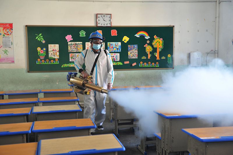 新学年开学前夕,该县教育部门联合蓝天救援队,对所有中小学校、幼儿园进行消杀作业,营造健康的校园学习、工作环境。