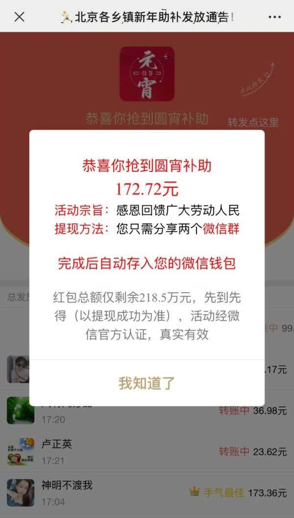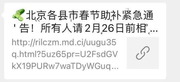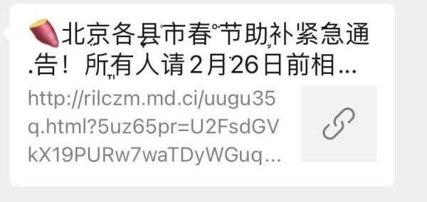 明天就是元宵节了,不法分子们动起了歪心思,打着领取节日补助的幌子,在微信群里推送各种链接,小编的同事也收到了这样的“提示”。领取补助到底是真是假?假的!别信!别转!下面我们就来看一下这类骗局。