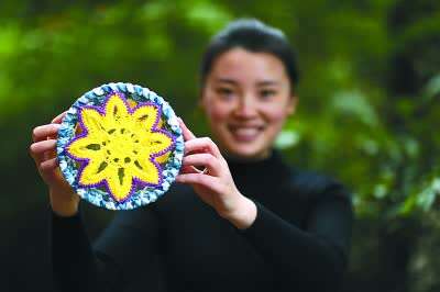 巧手织就脱贫路,在赤水市长期镇康桥社区,一名女青年在展示钩织产品。新华社发