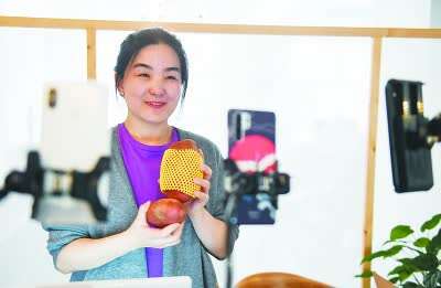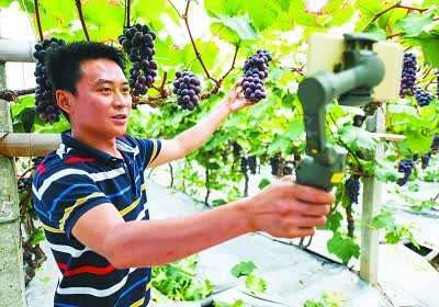 在乌兰察布市察右后旗,青年主播利用网络直播方式销售农产品。新华社发