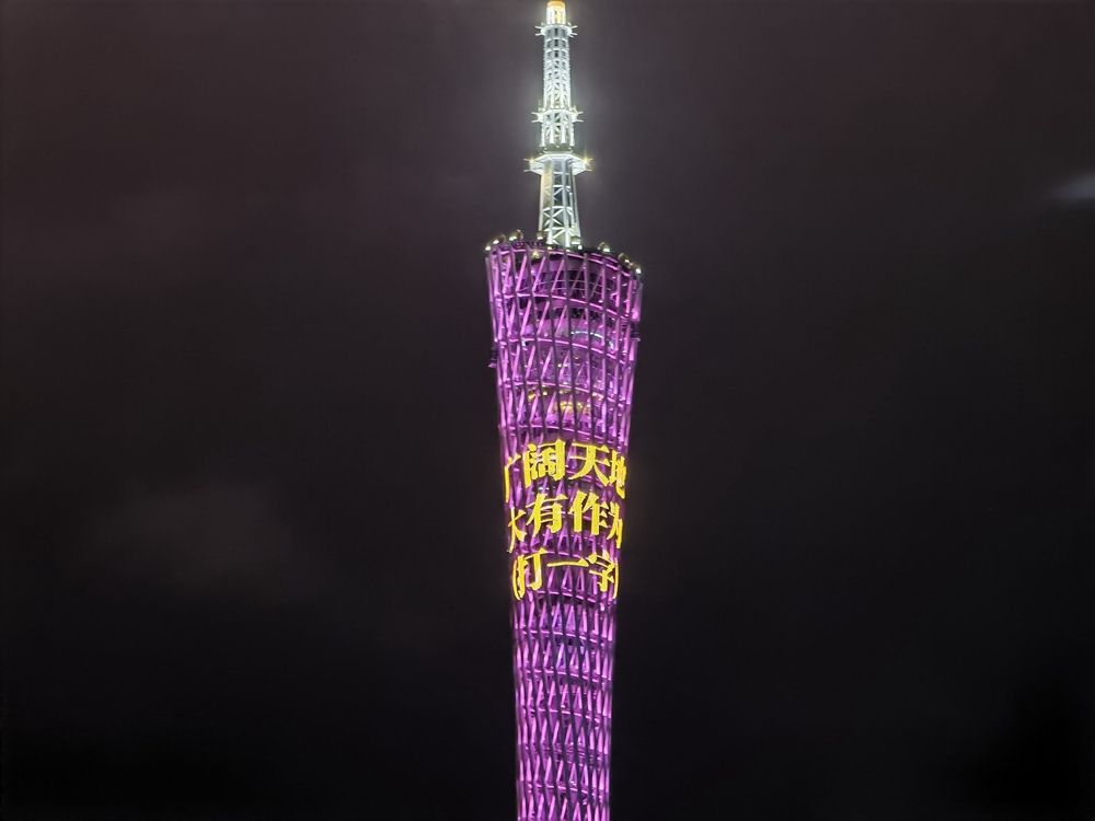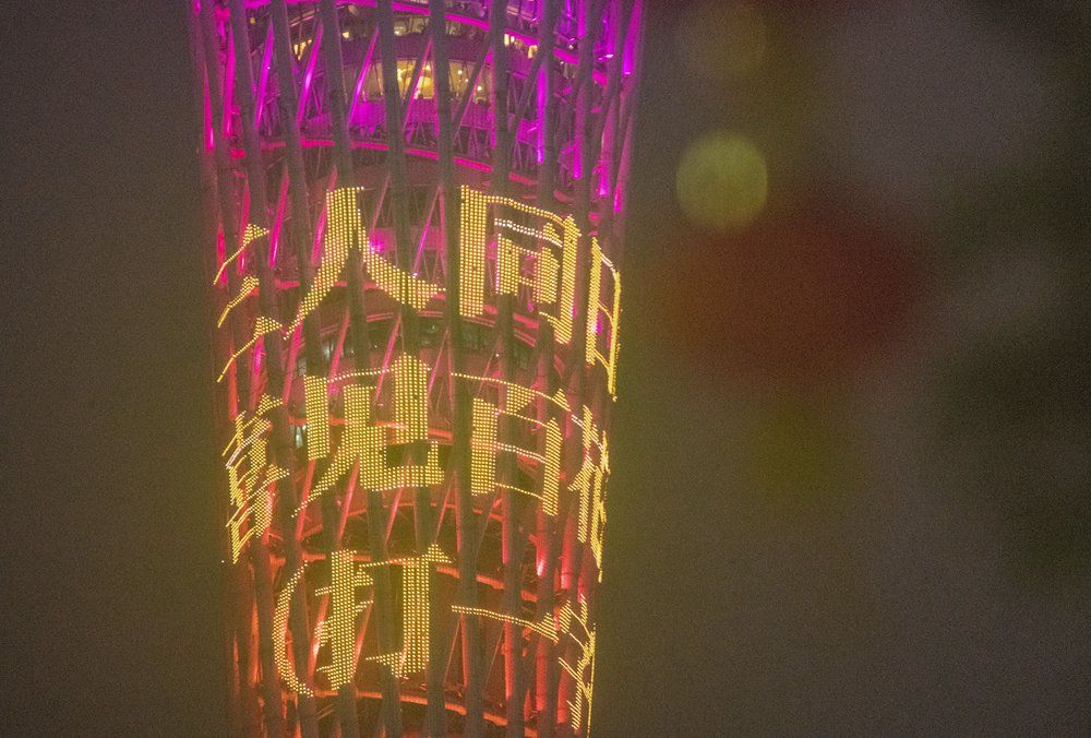 2021年2月26日,广州,农历正月十五,广州塔举办“全球最高”元宵灯谜会,以塔身作为“灯”通过滚动字幕播放灯谜谜面。广州的市民、游客可以参与这个全球最高的灯谜会来体验一下元宵节观灯猜谜的中国传统民俗。