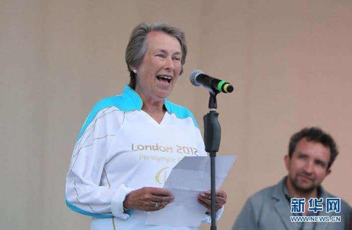 2012年8月28日,“残奥会之父”路·古德曼的女儿伊·勒夫勒在仪式上讲话。当晚,伦敦残奥会圣火点燃仪式和火炬传递在残奥运动的发源地英国曼德维尔举行。新华社记者侯俊摄 图片来源:新华网