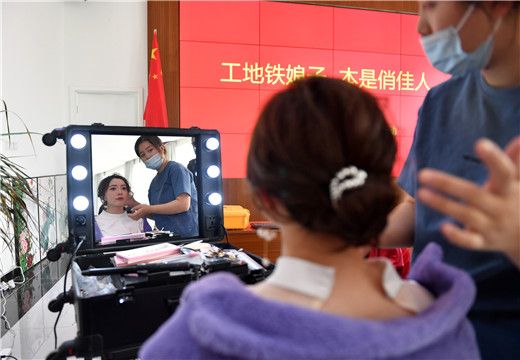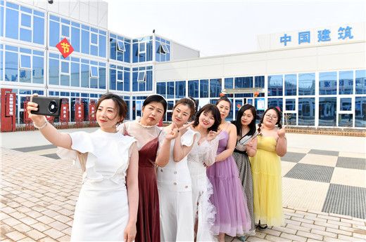 2021年3月8日,国际妇女节,河北雄安新区容东片区G组团安置房及配套设施工程G2标段的女建设者们,脱下工装,穿上长裙,“变身”俏佳人,在项目部内拍摄写真照片。