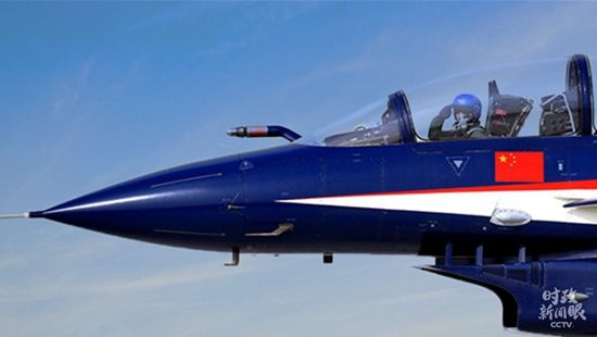 △飞行表演结束返航着陆滑行中,歼-10飞行员向观众敬礼。(来源于中国军网)