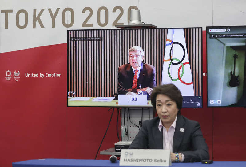 3月3日,国际奥委会主席巴赫通过视频连线与东京奥组委主席桥本圣子交流。新华社记者杜潇逸摄