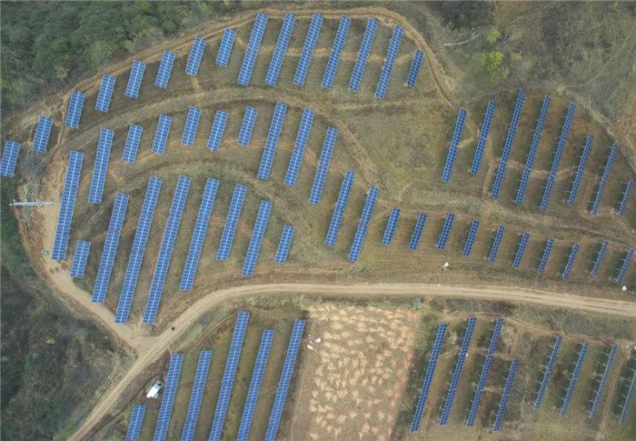 ▲陕西延安,航拍安塞区化子坪镇杨园村光伏扶贫电站一角。
