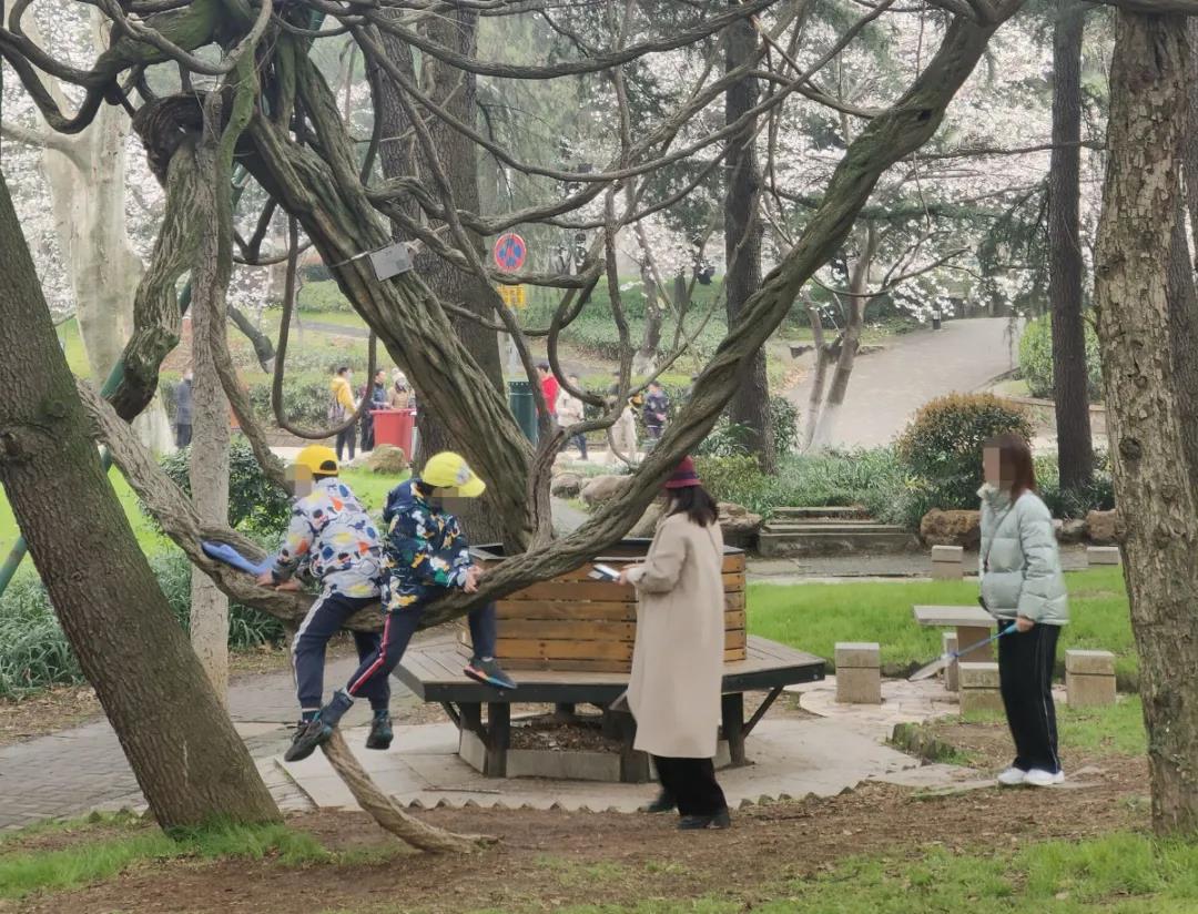 有游客攀折枝干