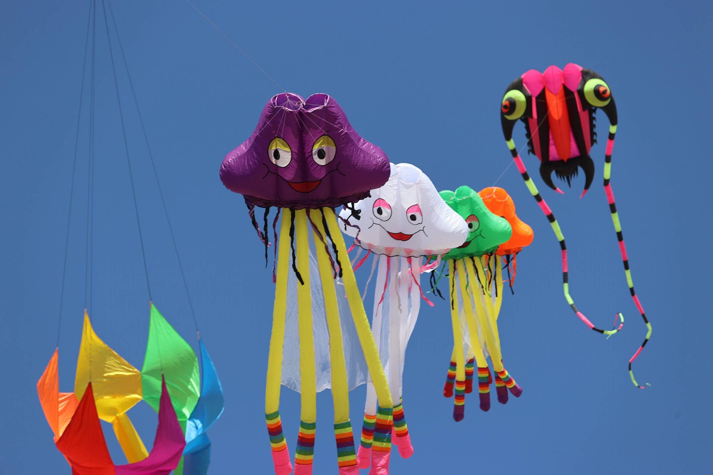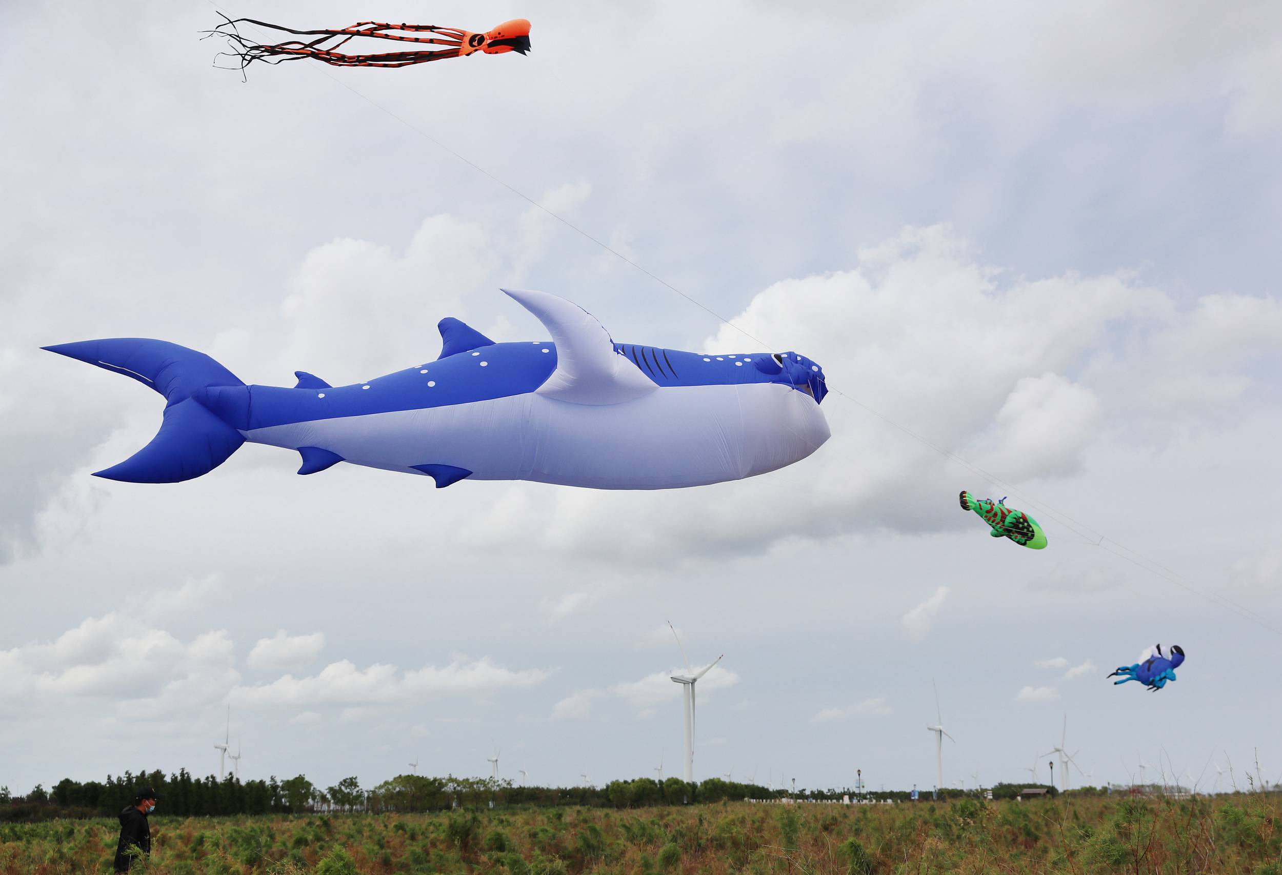 2020年10月7日,江苏南通启东,黄金海滩上空的“巨型海洋风筝秀”。