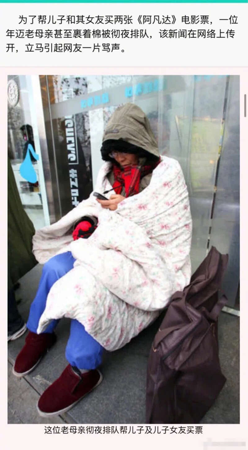 今天说一个妈妈裹着棉被为生病的孩子通宵排队,引发网络声讨;明天说影院经理决定下周涨价到200元引发讨论,这是市场经济还是坐地起价;再后来黄牛票卖到500一张已经不是什么新闻,这成了全国几个城市的通用行情;外地影迷打着飞滴、火车到大城市只为一睹IMAX真容也成了那两个月大家的常规周末活动;技术流影迷开始在豆瓣、天涯等社区给大家科普不同版本的《阿凡达》在画面信息上的差异;连电影院外的停车场收费都从5块涨到10块,因为看车大爷说,“这部电影太长了。”