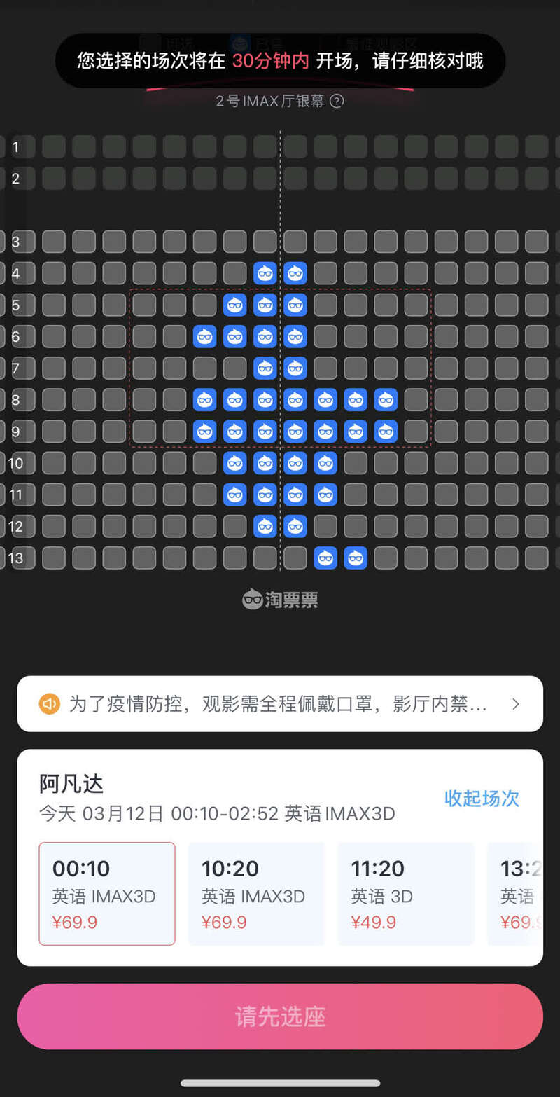 配合重映变“蓝”的选座页面