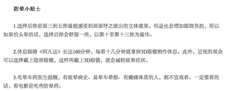 因此,还有媒体在关于这部电影火爆现象的新闻报道中援引医生的建议,容易晕车的观众在观影前,可以服用一些晕车药。