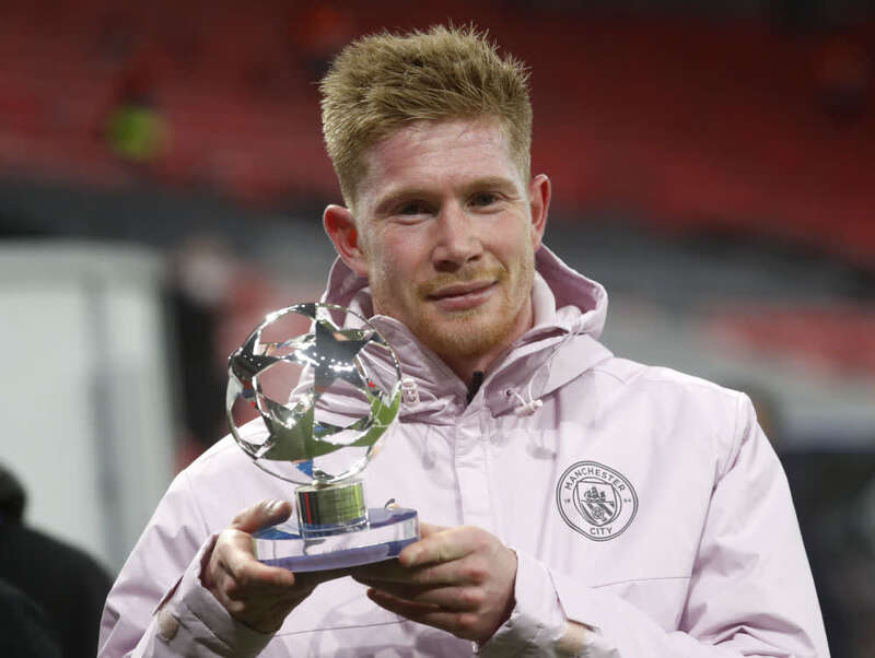 图为3月16日,曼城队球员德布劳内赛后被评为本场比赛的最佳球员。新华社/美联