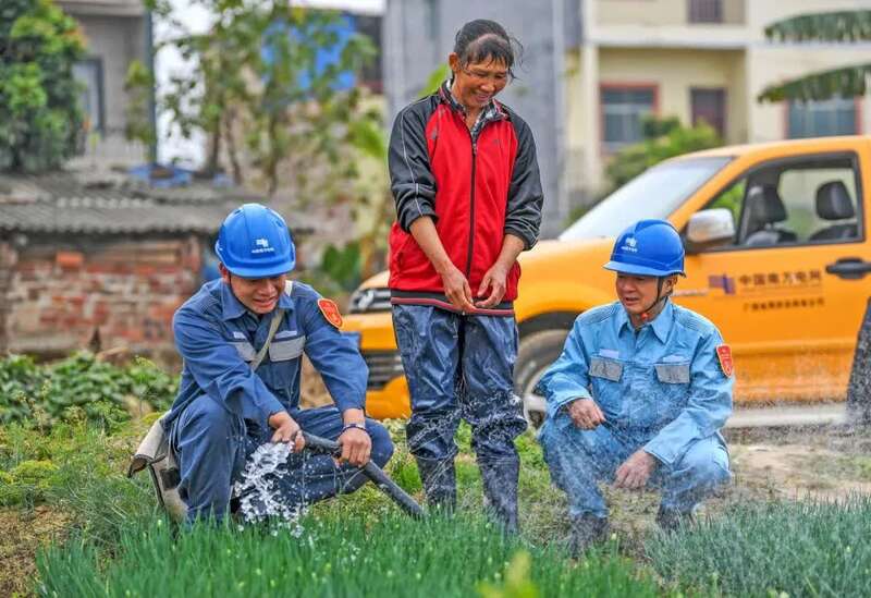 ▲位于广西右江河畔的中平村,是“广西香葱第一村”,所到之处,葱香飘逸,沁人心脾。田间地头,阡陌纵横,南方电网帮助村民都铺设了管道,全部用上电动喷灌。看着香葱地里洋洋洒洒的水花,村民黄乃吉的脸上也乐开了花。