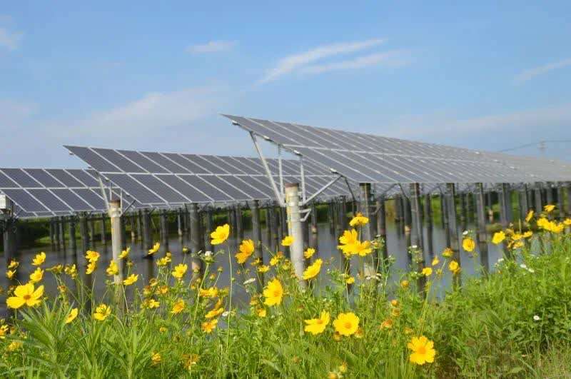 ▲春天是一个富有生命力的季节,中国节能下属中节能太阳能华东区长兴电站水塘边的格桑花都开放了。它们和光伏板一同沐浴着春天的暖阳,展现着无限的生机。