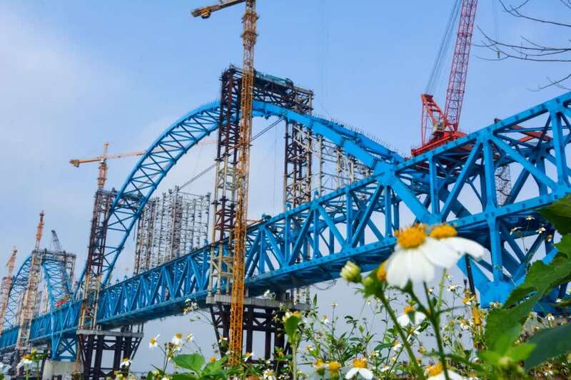 ▲春天如期而至,中国中铁六局承建的“亚洲第一跨”——洪奇沥水道特大桥主桥正在抓紧施工。