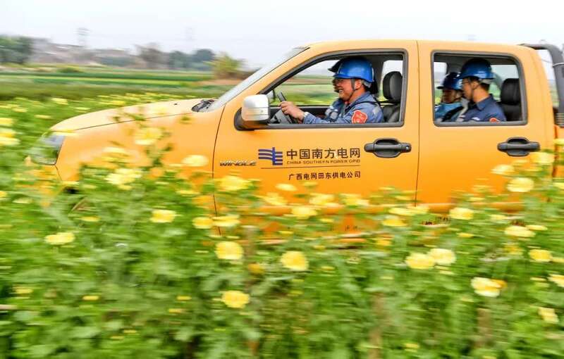 ▲早春的广西百色市田东县,春风和煦,春意盎然,南方电网的供电小哥们抢修途中偶遇一篇花海,和电力小哥们一起出发去找春天吧。