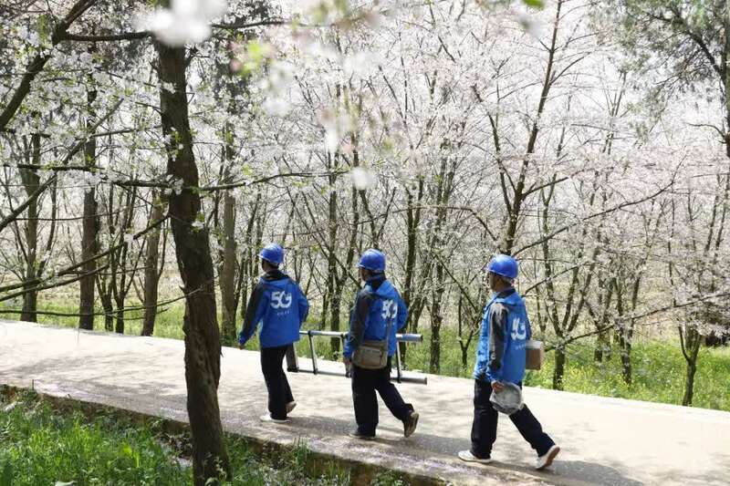 ▲“ 樱 ” 你而美,“ 樱 ”你而行。 为保障贵安新区平坝万亩樱花园及周边用户网络通畅,中国电信贵州公司持续投入人力物力,不断加强该区域的通信网络维护和保障力度,为广大游客提供稳定、快速、优质的网络服务。