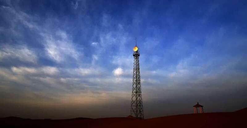 ▲黄河岸边,黎明时分,暖风习习,中国电信铁塔在晨光熹微中高高耸立。