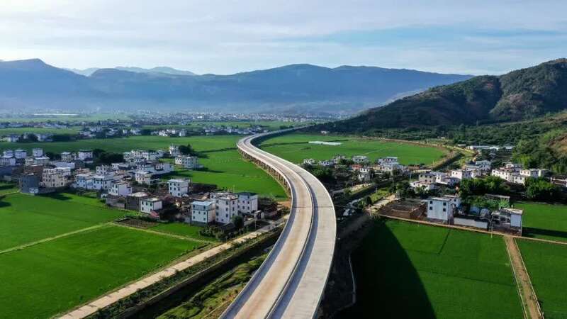 ▲中建集团云南华丽高速公路,穿越绿油油的田地。