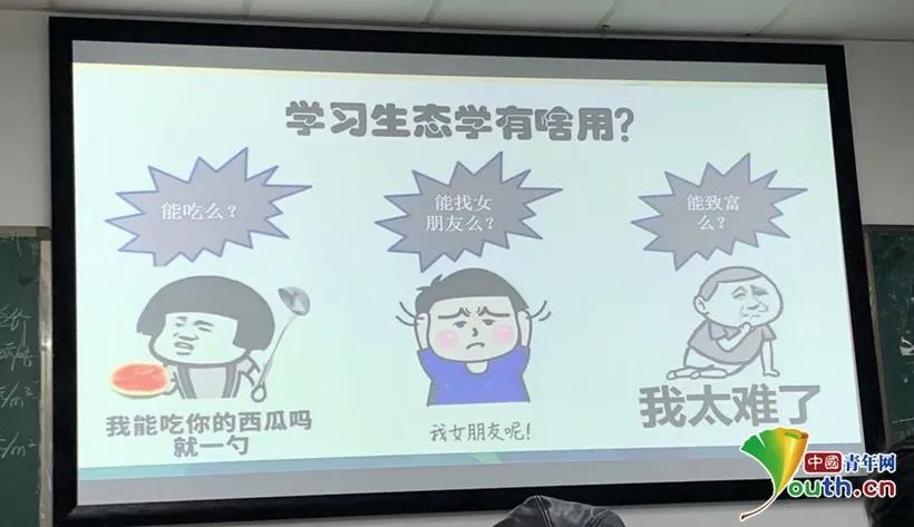 同样来自环境学院的黄梓桐表示,生态学里面有一些不太好理解的名词和概念,老师通过表情包讲解就更为形象、更易理解。“最重要的是给我们留下了深刻的印象。”她告诉记者,肖老师在讲解环境因子的相关知识时,就在PPT上放了一张胖胖的奥特曼表情包,对同学们说如果环境因素改变或者环境类型改变,奥特曼可能就会变成这样。“太形象了,很容易理解,让人印象很深刻。”