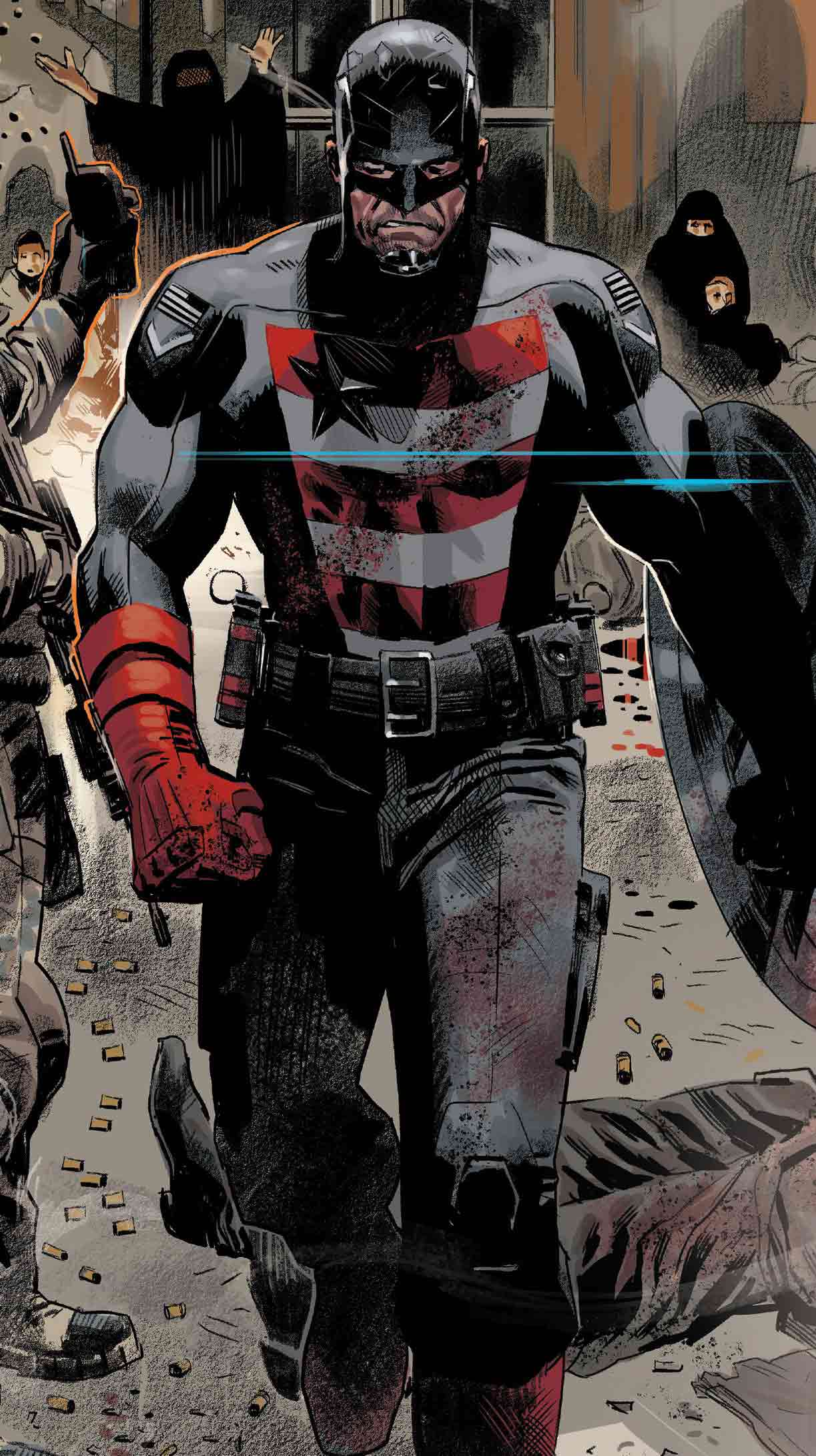 在漫画里,这位被称为“超级爱国者”(Super-Patriot)的约翰·沃克在继任美国队长之后,简直就是一个彻头彻尾的恶棍。为了完成所谓正义的任务,滥杀无辜。