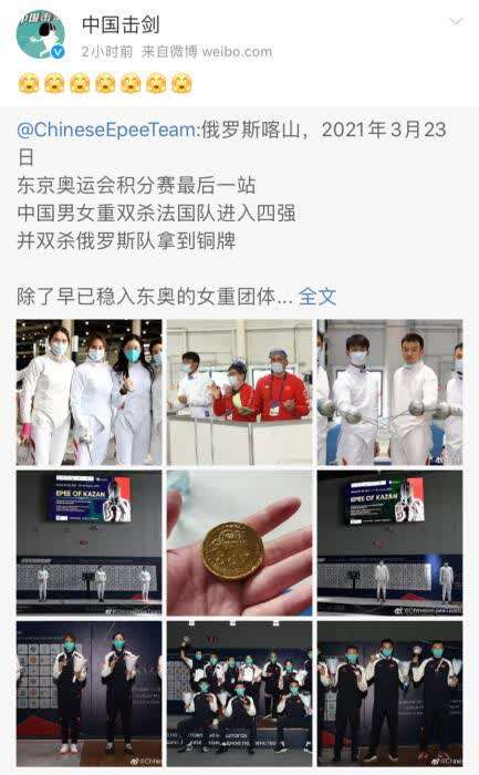 中新网3月24日电 据中国击剑协会官博消息,日前,在俄罗斯喀山举办的2021年重剑世界杯暨奥运积分赛中,中国男女重剑队双双击败俄罗斯队拿到铜牌。除了早已稳入东京奥运会的女重团体之外,中国男重团体最终也获得了奥运资格。