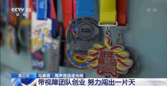 如今,马寅青的团队已经有20位员工,其中15人是视障人士。到目前为止,他们已经录制了300多本有声书籍,闯出了属于自己的一片天地。在马寅青办公室的墙上,挂着一排马拉松奖牌,长跑也是她多年的爱好,她希望自己能和健全人一起站在同一条赛道上。