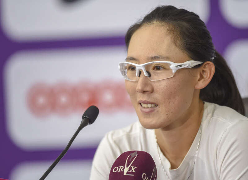 资料图:郑赛赛出席赛后新闻发布会。新华社发(尼库摄)