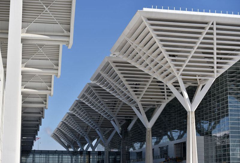 天津中心城区与滨海新区之间的绿色生态屏障内,国家会展中心(天津)一期展馆区建设进入收尾阶段……