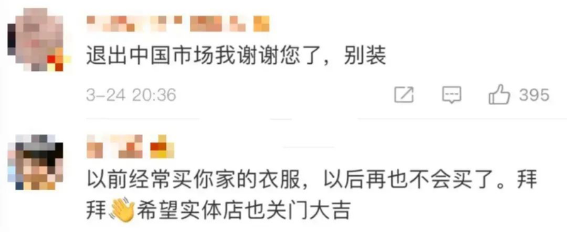 此外,不少网友看完声明后,直接喊话H&M,让其“退出中国市场”。
