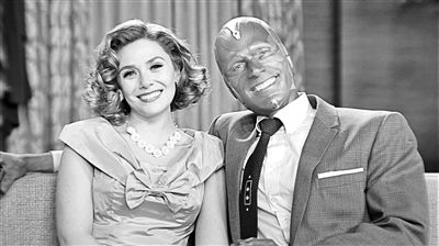 《旺达幻视》的应对策略是:前两集拍成情景喜剧,先让观众接受男主和女主,再推进剧情。不必夸张剧中的种种暗扣,那是给1%喜欢慢放的粉丝们预备的彩蛋。《旺达幻视》更巧妙之处在宏观规划:通过黑白与彩色对比,暗示背后隐藏着另一世界。
