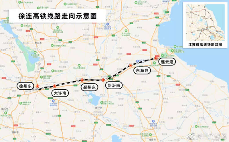 作为连云港至乌鲁木齐陆桥通道的最东段,也是最后通车段,徐连高铁于2月8日开通,在运营初期开行徐州东至连云港段本线动车组列车7对。徐连高铁建成通车,结束了沿线邳州、新沂、东海县三地不通高铁的历史,同时惠及邻近的沭阳、临沭、郯城等苏北鲁南地区旅客出行。