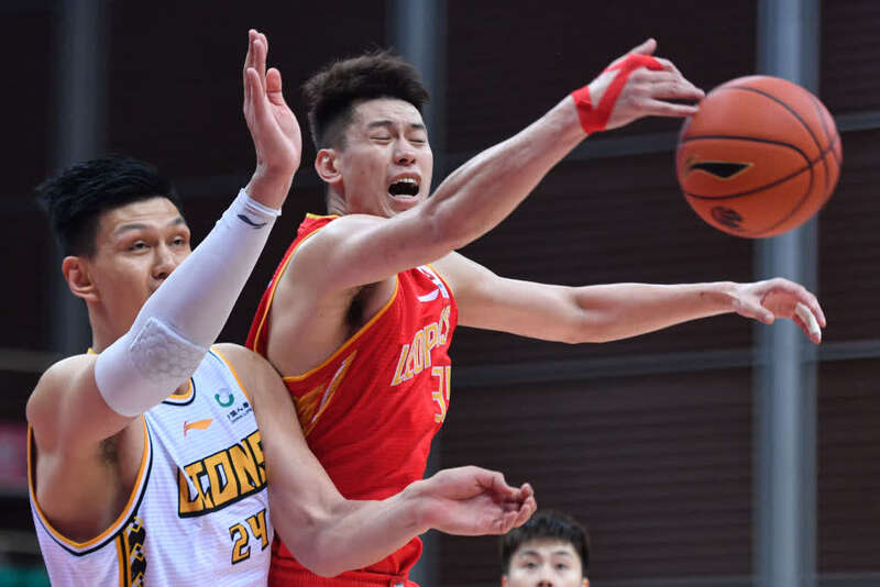 3月27日,龙狮队球员祝铭震(上)在比赛中上篮。新华社记者黄宗治摄