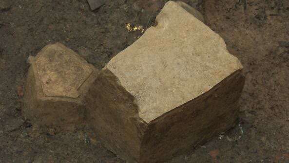 北京大学考古文博学院博士 8号坑负责人 蔡宁:红烧土块可能是和建筑的墙体有关,木料我们推测可能是建筑的梁或者是柱一类的东西,石板我们觉得可能是和墙体有关,这样的话,这三类东西都给我们指向一个关于建筑的线索。