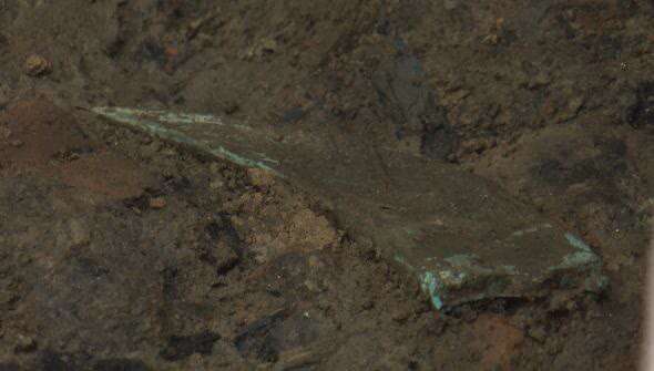 30日,三星堆8号坑南部、中部两个区域的填土,已经清理完成,暴露出灰烬层,发现了一些青铜器碎片,专家根据显露的花纹推测,而这些碎片可能来自同一件青铜器,还有望拼接起来。