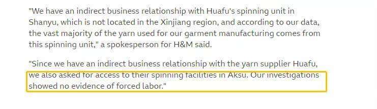 其实,在境外媒体开始炒作“强迫劳动”后,H&M也曾派人前往新疆实地考察阿克苏的工厂。