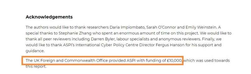 ▲英国外交和联邦事务部为ASPI提供了10000英镑的资金支持