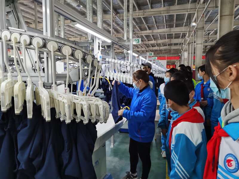 周末营的第一站,小队员们来到了新疆依翎针织有限公司,现场讲解员通过生动有趣的时间轴为小队员们讲解企业的发展历程,通过一个个小故事讲解产业援疆是如何助力新疆经济发展、促进阿克苏棉花产业高质量发展的。