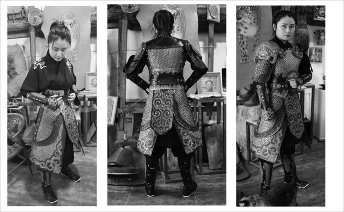孟璐璐想制作一套女性专属铠甲的愿望已埋藏心里多年。作为手艺人,她经常要去全国各地采风,每到一个城市,都会去当地的博物馆转转,“我发现博物馆里展览的大多是男性使用的兵器、铠甲等,我们知道花木兰,也知道女将军妇好,但很少见到女性铠甲。”