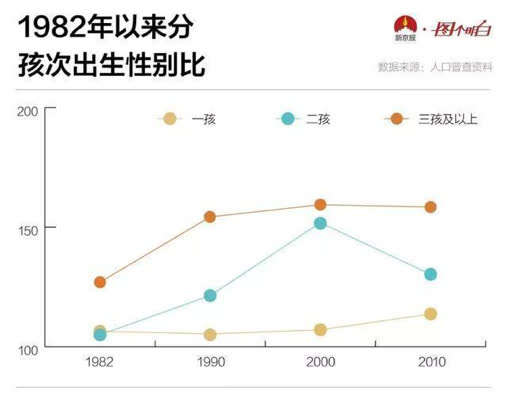 人工干预后,出生人口性别比保持在103~107之间算是比较正常。