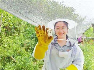 “到了养蜂场,乌压压的一片蜜蜂。一开始她不敢动手,后来还是鼓起勇气戴上了防护罩去抓蜜蜂、找蜂王。”陈明持说。