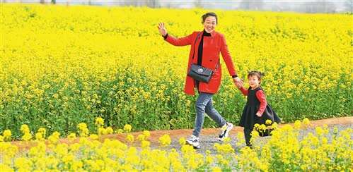河北省沙河市金沙河红薯岭产业园万亩油菜花盛开,吸引众多游客踏青赏花。 赵永辉摄