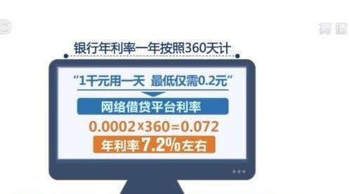 这些借贷平台给出的利率究竟是低还是高呢?仔细计算一下就会发现:银行年利率一年按照360天计,这家宣称“1000元用一天,最低仅需0.2元”的网络借贷平台的利率,经过换算,就是0.0002*360=0.072。这样的年利率已经高达7.2%左右。要知道,目前正规银行的消费贷、信用贷等的年利率普遍在5.22%到5.88%左右,在优惠期间利率还有机会打折。