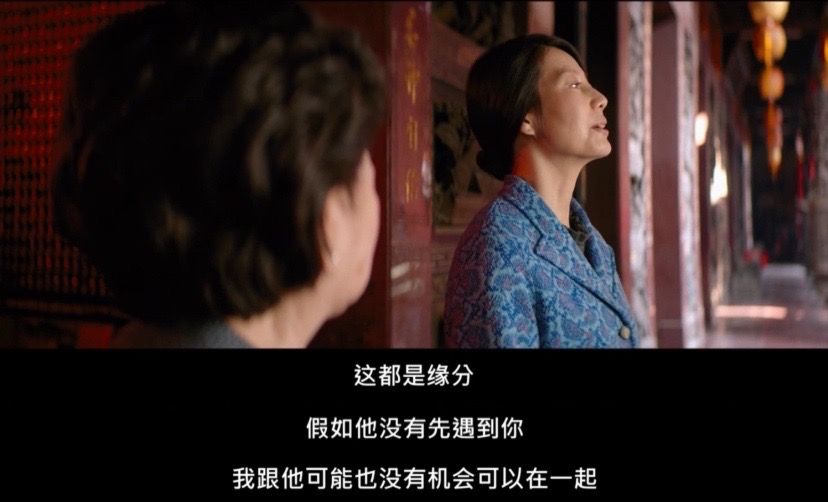 林秀英与女儿们的第二次深夜谈话,是在她道观遇见蔡小姐之后。原本笃信佛教的蔡小姐,为了能让陈伯昌的灵魂安歇(因为林秀英是按道教葬礼仪式布置的灵堂),来到道观祈福。她的这一举动以及随后关于“缘分”的谈话,让林秀英明白了众人特别是佳佳盛赞蔡小姐伟大的原因。世上没有几人,能够真正为了爱人放下成见。